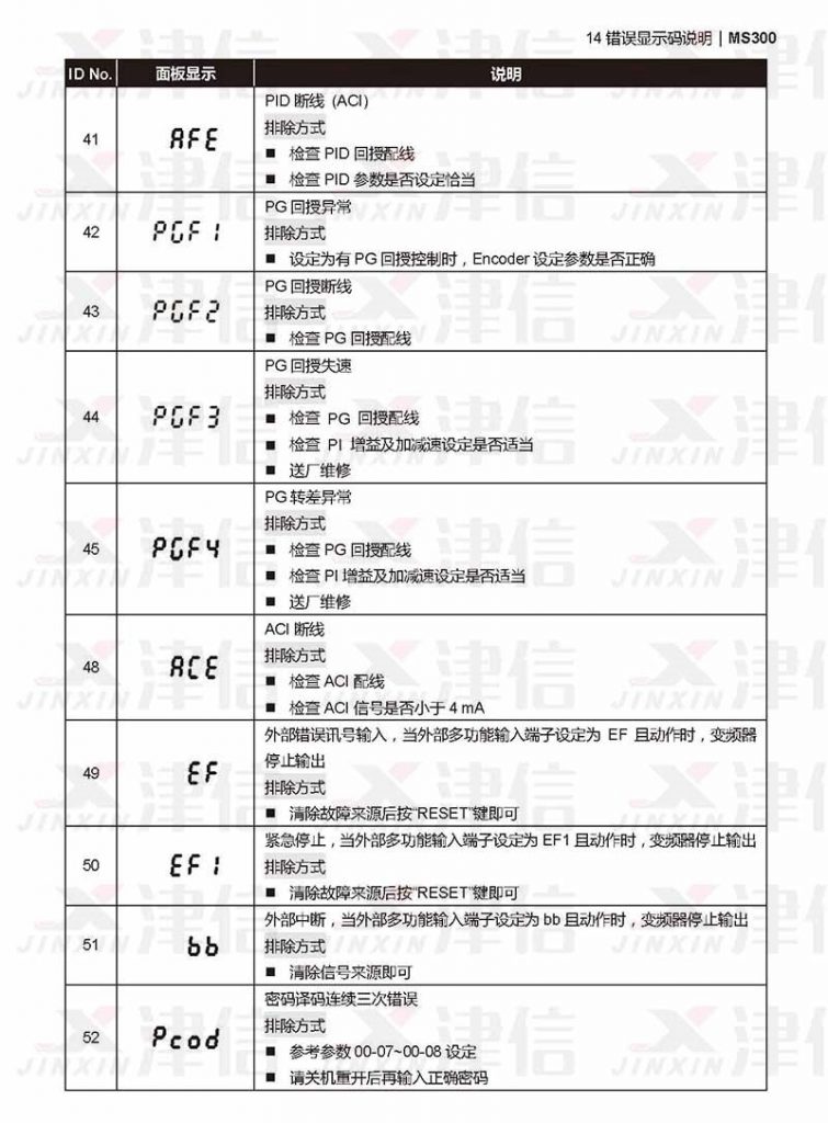 五、臺達MS300變頻器EF,AFE,PGF1,PGF2,PGF3,ACE,EF1,BB,PCOD故障代碼