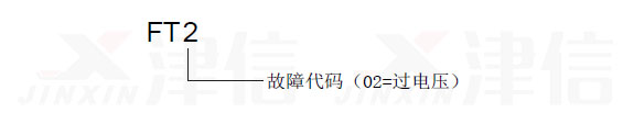 當(dāng)偉肯變頻器出現(xiàn)故障時(shí),偉肯變頻器會(huì)停止運(yùn)轉(zhuǎn),并且在顯示器上以如下的格式閃爍顯示符號(hào)FT 和故障代碼。例如: