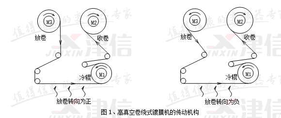 冷卻輥和收卷輥的轉(zhuǎn)向是固定的,但是放卷輥由于卷筒卷繞方向不同,工作時有正、反兩種轉(zhuǎn)向,對應(yīng)反、正兩種轉(zhuǎn)矩。