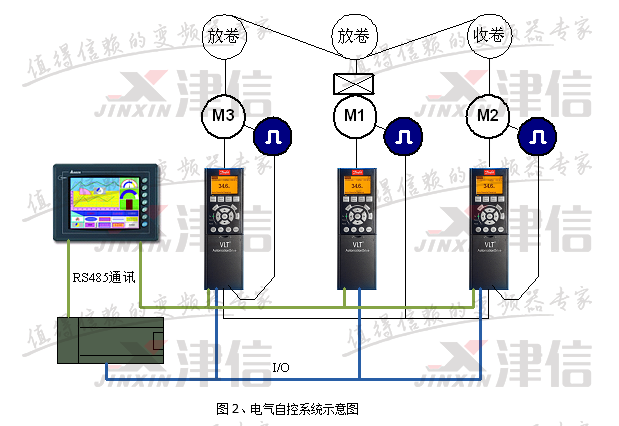 M3為放卷輥,中心卷繞,直徑逐步變小,由一臺FC302驅(qū)動,提供放卷張力。