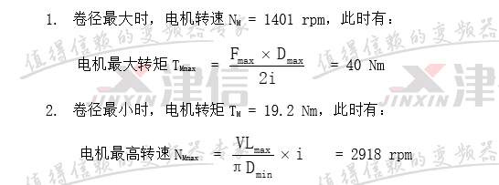 選擇異步伺服電機的方法:以滿足最大卷徑時的轉矩、轉速數(shù)據(jù)為電機額定數(shù)據(jù),選擇異步伺服電機。